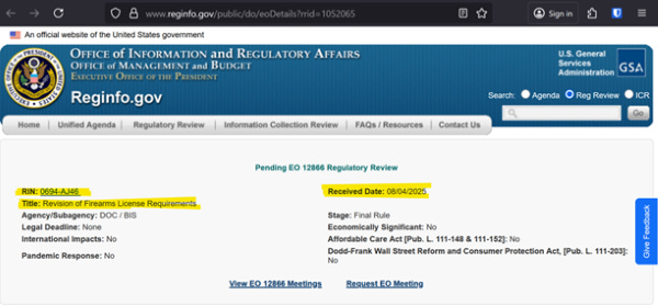 According to the President of the National Association of Gun Rights in America, Dudley Brown, The federal government is moving to enact a Biden era gun rights treaty that would strike a significant wound in private arms ownership, signing the ‘Small Arms Treaty” at the U.N. Gun Control Summit in Geneva. Biden’s Commerce rule (RIN 0694-AJ46) is a copy-paste of UN treaty language that would effectively ban U.S. civilians from exporting small arms abroad — killing overseas markets for American-made firearms — while letting foreign governments keep buying. While there was indeed a Gun Control Summit in Geneva, after Brown made his social media post, the Reginfo.gov website went down due to ‘maintenance’ and all information on RIN 0694-AJ46 has been removed from the site.