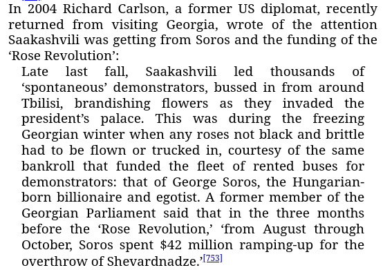 Thus over the years, Soros has constructed a well organized infrastructure of nonprofits and businesses which have participated in and facilitated color revolutions through a process of internal destabilization.