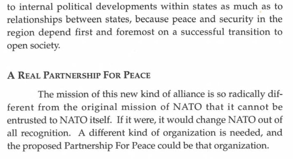 “𝑻𝒉𝒆𝒓𝒆𝒇𝒐𝒓𝒆, 𝒊𝒇 𝑵𝑨𝑻𝑶 𝒉𝒂𝒔 𝒂𝒏𝒚 𝒎𝒊𝒔𝒔𝒊𝒐𝒏 𝒂𝒕 𝒂𝒍𝒍, 𝒊𝒕 𝒊𝒔 𝒕𝒐 𝒑𝒓𝒐𝒋𝒆𝒄𝒕 𝒊𝒕𝒔 𝒑𝒐𝒘𝒆𝒓 𝒂𝒏𝒅 𝒊𝒏𝒇𝒍𝒖𝒆𝒏𝒄𝒆 𝒊𝒏𝒕𝒐 𝒕𝒉𝒆 𝒓𝒆𝒈𝒊𝒐𝒏, 𝒂𝒏𝒅 𝒕𝒉𝒆 𝒎𝒊𝒔𝒔𝒊𝒐𝒏 𝒊𝒔 𝒃𝒆𝒔𝒕 𝒅𝒆𝒇𝒊𝒏𝒆𝒅 𝒊𝒏 𝒕𝒆𝒓𝒎𝒔 𝒐𝒇 𝒐𝒑𝒆𝒏 𝒂𝒏𝒅 𝒄𝒍𝒐𝒔𝒆𝒅 𝒔𝒐𝒄𝒊𝒆𝒕𝒊𝒆𝒔,” Soros wrote.