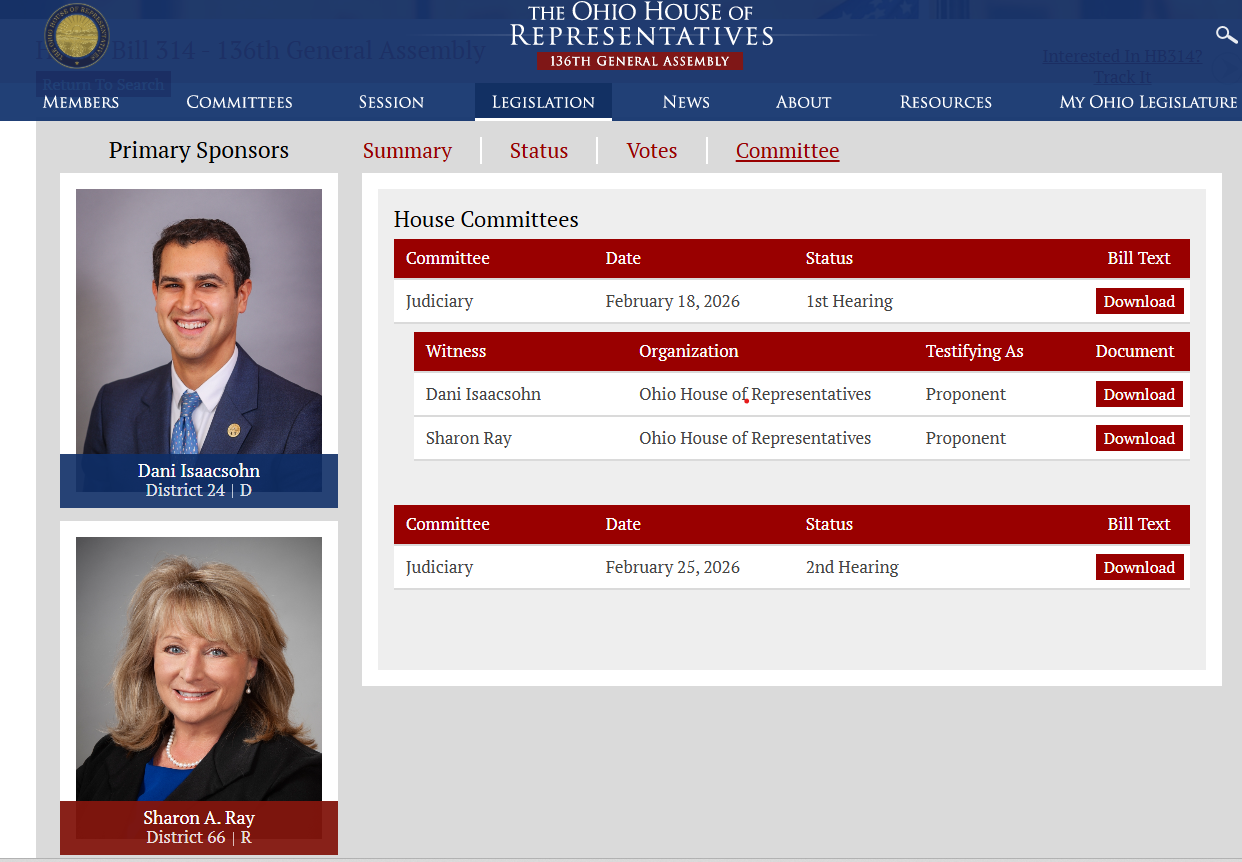 STATEWIDE - On February 18, Ohio House Bill 314 had its first hearing in the House Judiciary. The bill, proposed by Representative Dani Isaacsohn (D-Cincinnati) and Representative Sharon A. Ray (R-Wadsworth), would bring sweeping changes to citizens' ability to request transparency from their government and allow for massive retaliatory action from government actors seeking to shut down requests through the Freedom of Information Act.