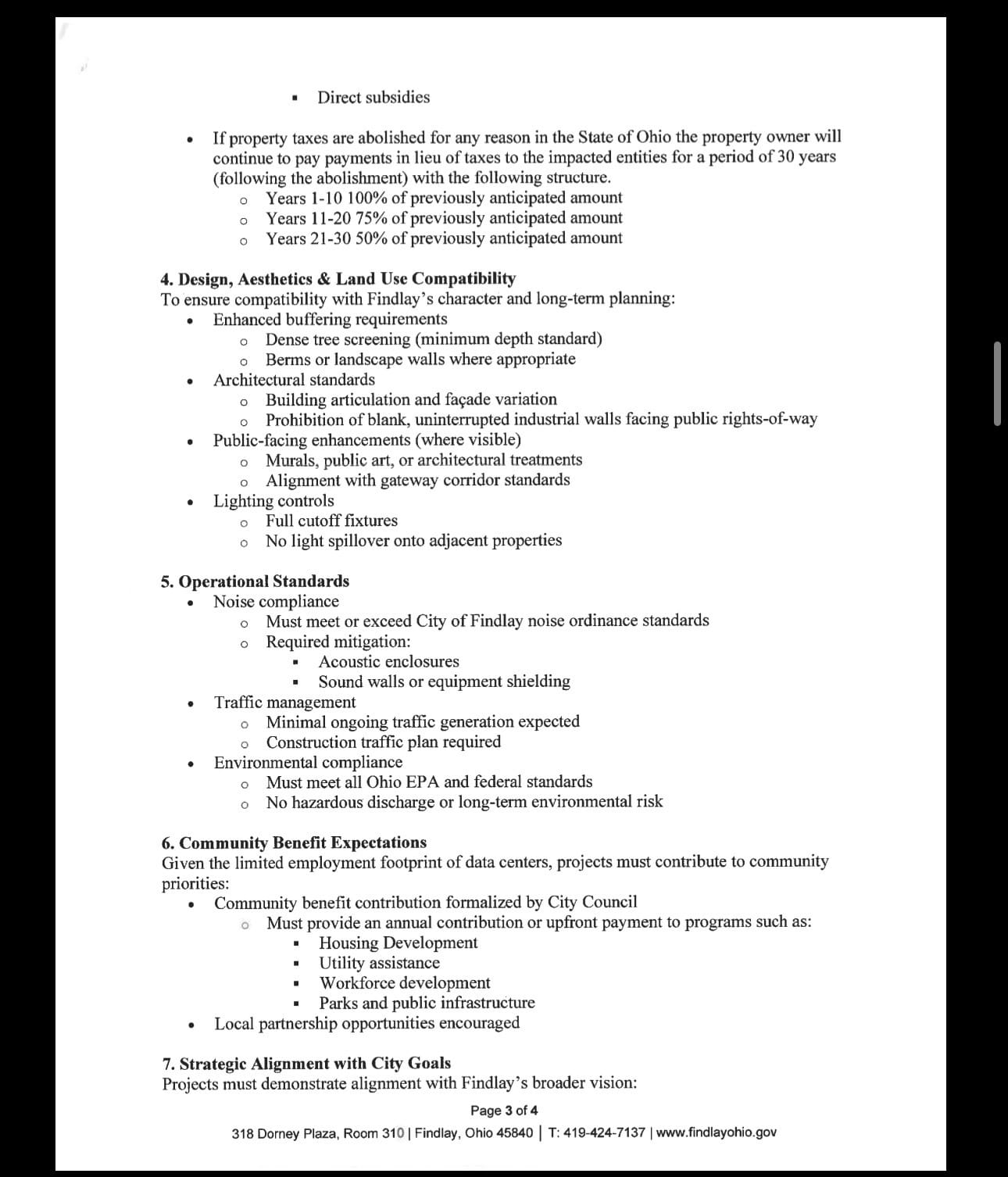 Anne Cole, a resident of Ward 2, spoke about what she described as “backdoor” processes used as data centers move into cities and townships. She expressed concern that similar activity may be occurring near the north end of Findlay, in Allen Township. With the city pursuing rapid annexations, Cole raised concerns that annexation could be used as a pathway for data centers to enter the city.
