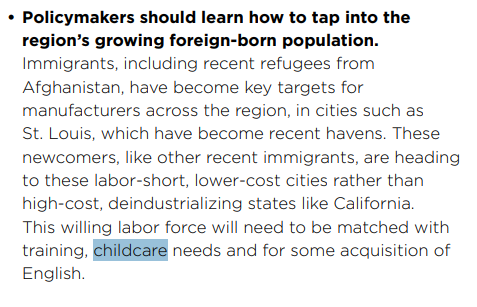 According to the think tank, optimized local development strategies would create transparent pathways for growth by addressing things like 'labor shortages' through training and subsidizing immigrant labor replacement. As a matter of historical precedent, Heartland Forward partnered with the Economic Investment Group (EIG) to create the Heartland Visa program in 2024, through strong advocacy with The U.S. Conference of Mayors. This act would create a green card fast track that allows cities to 'opt-in' to federal immigrant labor importation programs that facilitate massive immigrant transitions with a goal of importing at least 100,000 immigrant workers into America's heartland every year.