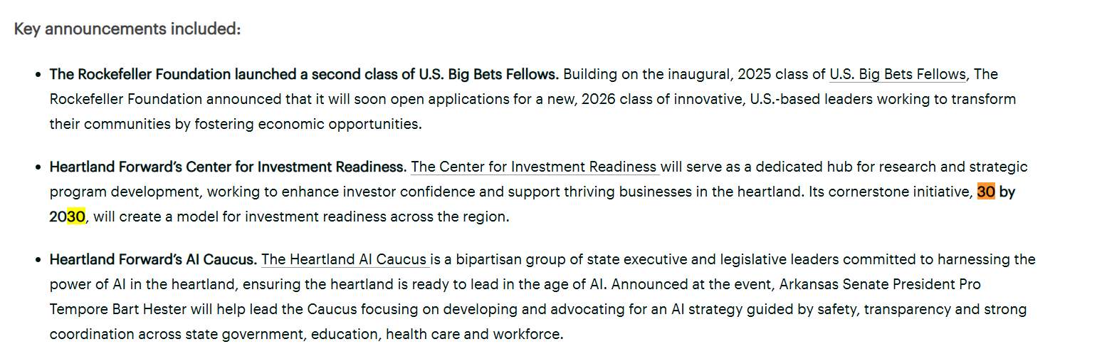 Heartland Forward was founded by the Walton Family, also founders of Walmart. The family has close ties with the World Economic Forum, and much of their 'philanthropic work' ties into the shared agendas of Globalist infrastructures.