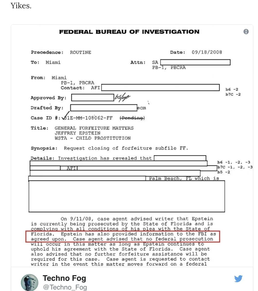 We know Epstein and Maxwell worked for intelligence agencies, and provided information to the FBI itself.