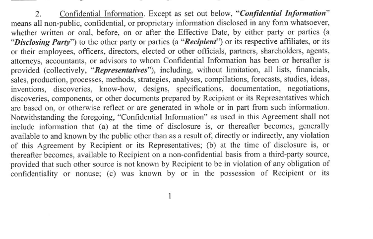 2. Mark Kersake's statement on the Confidentiality Agreement: