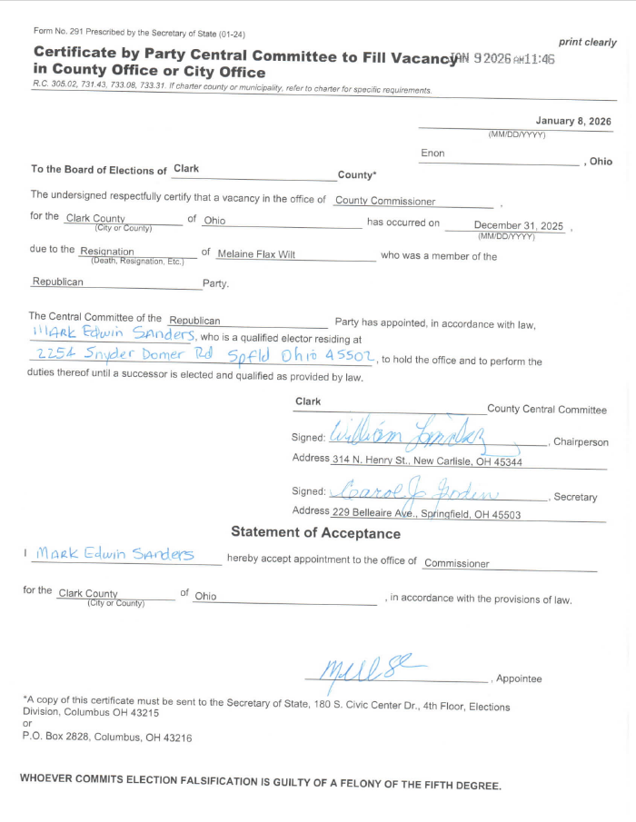While the separation has gone largely unaddressed for nearly three years, the ‘Republican Party of Clark County’ has recently filed a seat vacancy petition to fill the vacated position of Clark County Commissioner Melanie Flax Wilt. By law, because of her early departure, it is up to the official, duly elected central committee of the Republican Party of Clark County, as stipulated by ORC 305.02, to fill the vacancy which now brings the matter to a larger legal dispute.