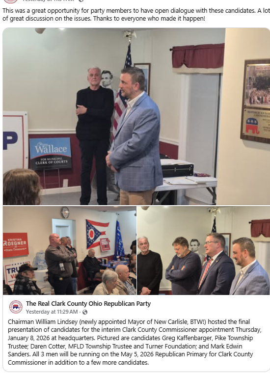 Rosenberger, who is still listed as a county chair on the official ORP website, argues the 'Republican Party of Clark County' is illegitimate. According to Rosenberger, the matter has been brought up to Ohio Party chair Alex Triantafilou, who has refused to get involved in the matter and, despite this being the specific purview of his position, wants the matter to be handled internally and locally. Unfortunately, this has now exploded into a larger issue as both groups have now submitted forms to nominate their selections for the vacant county commissioner position.